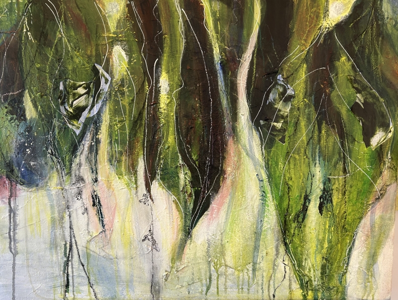 Te zien zijn kleurrijke abstracte landschappen in grote en kleine formaten. Ook zijn er objecten van papier, kaarten en harmonicaboekjes te zien.